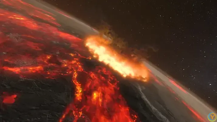 你现在看到的是地球历史中最黑暗、最恐怖的时期——冥古宙。这是一个比地狱还要严酷的时代,那时的地球既没有我们熟悉的蓝天,也没有温暖的阳光,更没有一块可以落脚的土地。取而代之的是一片无边无际、炽热沸腾的岩浆海洋,几乎覆盖了整个星球表面。接下来,我们就来聊聊地球最早的时代—冥古宙,一个比地狱还要恐怖的时期。