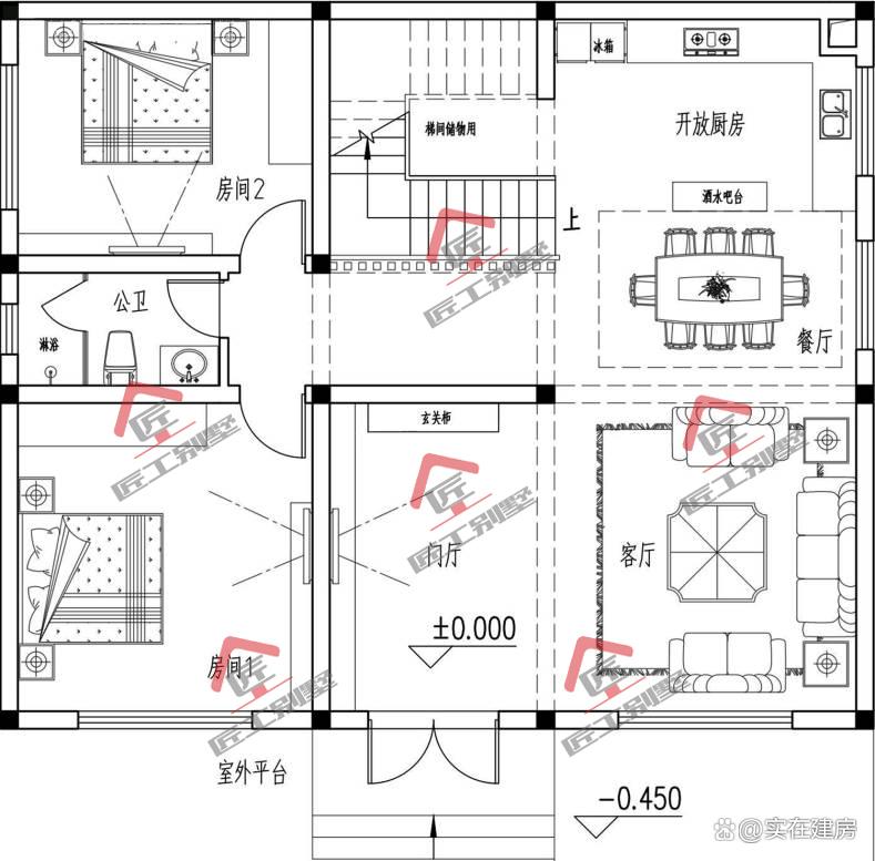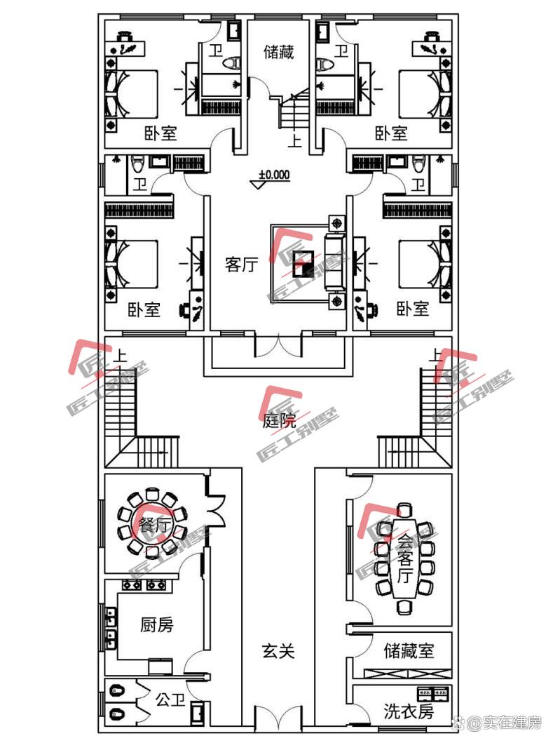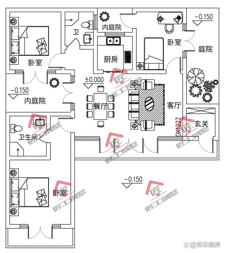 这款一层三合院式农村民居,其设计理念匠心独运,将空间精妙地划分为三个既独立又相互呼应的部分,每一处都散发着独特的韵味与明确的功能性。外院区域,作为整个建筑的门户与延伸,被赋予了宽敞开阔的特质,不仅为邻里间的友好交流提供了一个温馨的平台,也成为了村民们休憩放松的理想之地。巧妙的是,设计者在外院中融入了晾晒区与庭院种植区的规划,这一创新之举不仅极大地优化了空间利用率,更赋予了小院以生机与活力。
