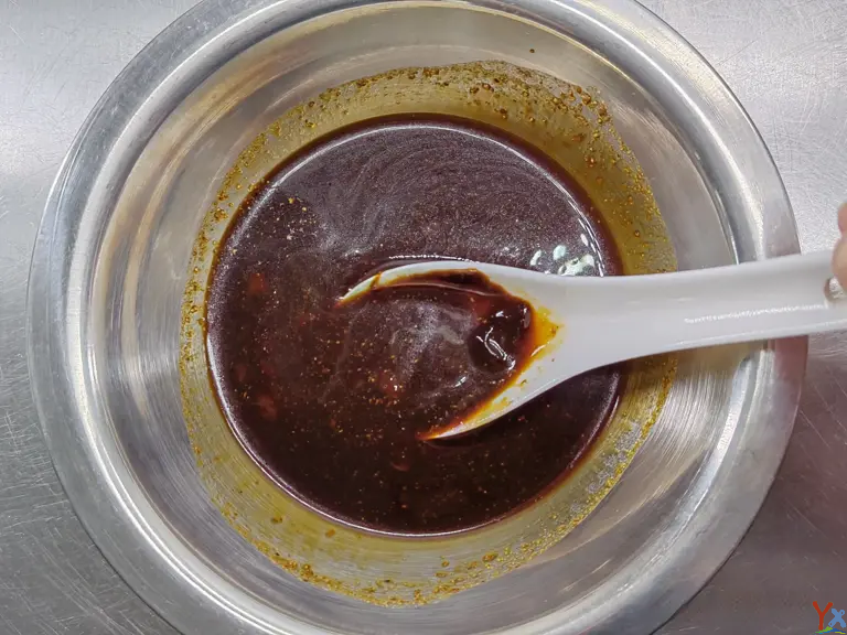 2、砂锅焗鱼头的味要好,酱料就是这道菜的灵魂,我有酒店不对外的配方,照着克数来就可以,盘中加2克味精,1克白胡椒粉,15克生抽,5克老抽,10克蚝油,10黄豆酱,10克柱候酱,15克花雕酒,充分搅拌均匀后酱料就有了。