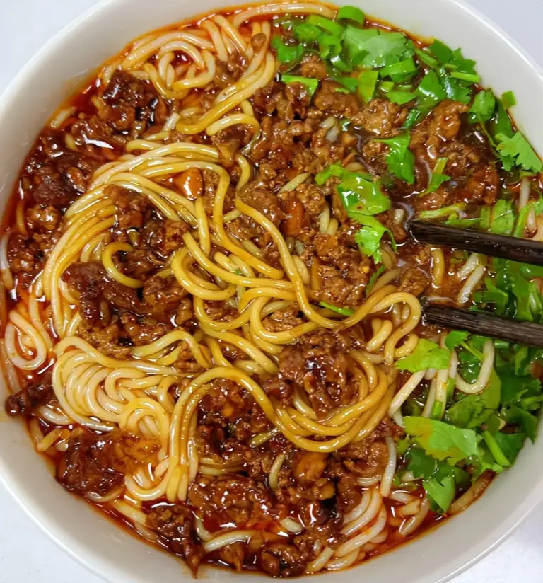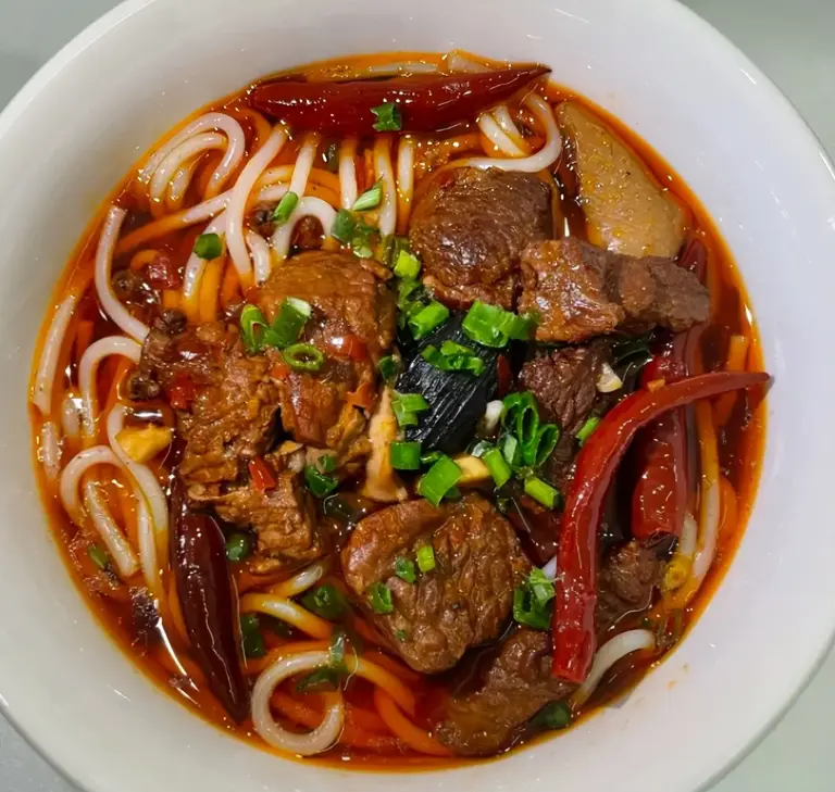 在湖南,“嗦粉”是一种生活态度,而常德牛肉粉就是这种态度的图腾。它的精髓在于那碗用牛骨和香料慢炖而成的浓郁汤底,以及炖得软烂入味的牛肉块。米粉粗圆有嚼劲,浸在香辣的汤中,再撒上一把香菜和葱花。每一口,都是牛肉的醇厚、米粉的米香和辣椒的火热在口中碰撞,带来无与伦比的满足感。