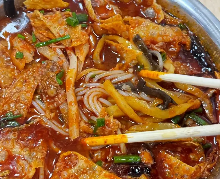 如果说哪碗粉能引发爱憎分明的极端情绪,那一定是螺蛳粉。它是一曲由酸、辣、鲜、爽、烫构成的交响乐,而灵魂,就是那股让许多人“闻风丧胆”却又让爱好者欲罢不能的酸笋味。浓郁的螺蛳汤底,配上炸腐竹、酸笋、木耳、花生,红油铺满,香气霸道。它不是一碗普通的粉,而是一种味觉的探险,一旦爱上,便会上瘾。