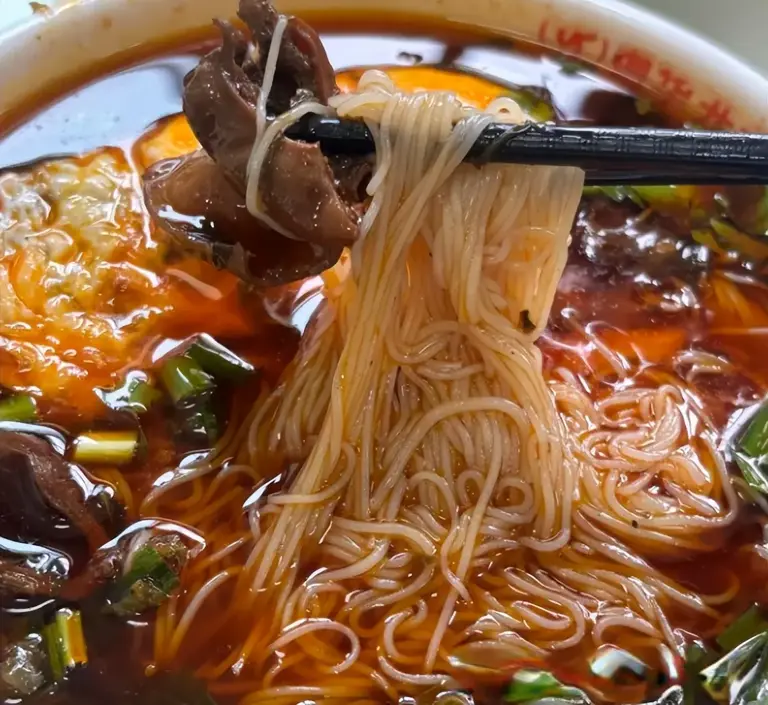 提到四川米粉,很多人会想到成都的肥肠粉,但绵阳米粉自成一派。它的特点是粉极细,入口顺滑,几乎不用咀嚼。汤底以红汤为主,但红油香而不燥,辣度适中,更多的是突出骨汤的鲜美。牛肉、肥肠等臊子给得足,再撒上一把香菜和葱花,是四川米粉中相对温柔,却同样让人回味无穷的存在。