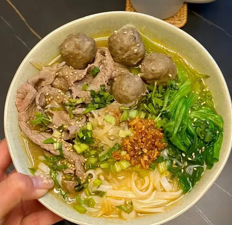 潮汕人对食材本味的追求,在牛肉粿条上体现得淋漓尽致。它的灵魂是“新鲜”。牛肉必须是当天宰杀的牛,按不同部位现切现涮,在滚烫的牛骨清汤中几秒即熟,保证了极致的嫩滑。粿条(一种河粉)爽滑,汤底清甜,只撒上几粒葱花和南姜末,吃的就是牛肉本身的原汁原味。这碗粉,是对“新鲜”二字的最高敬意。