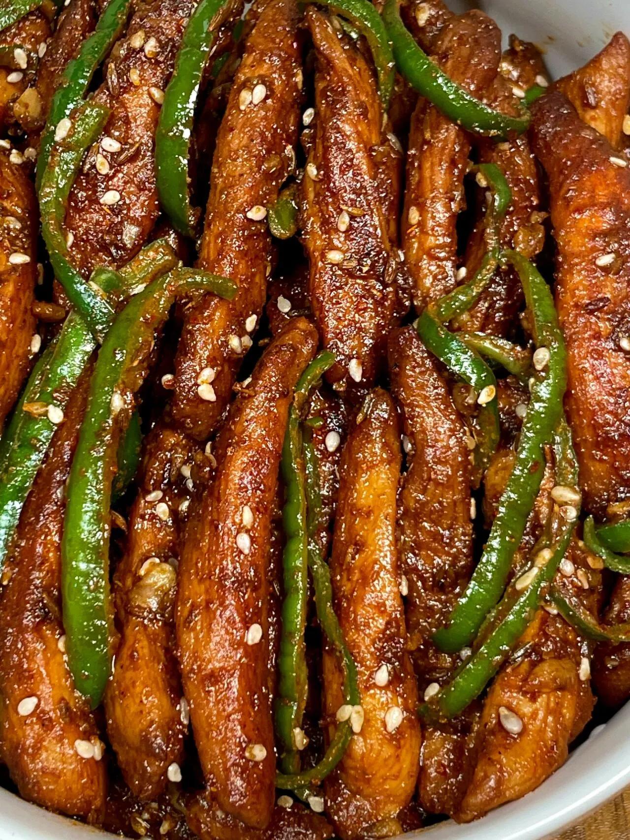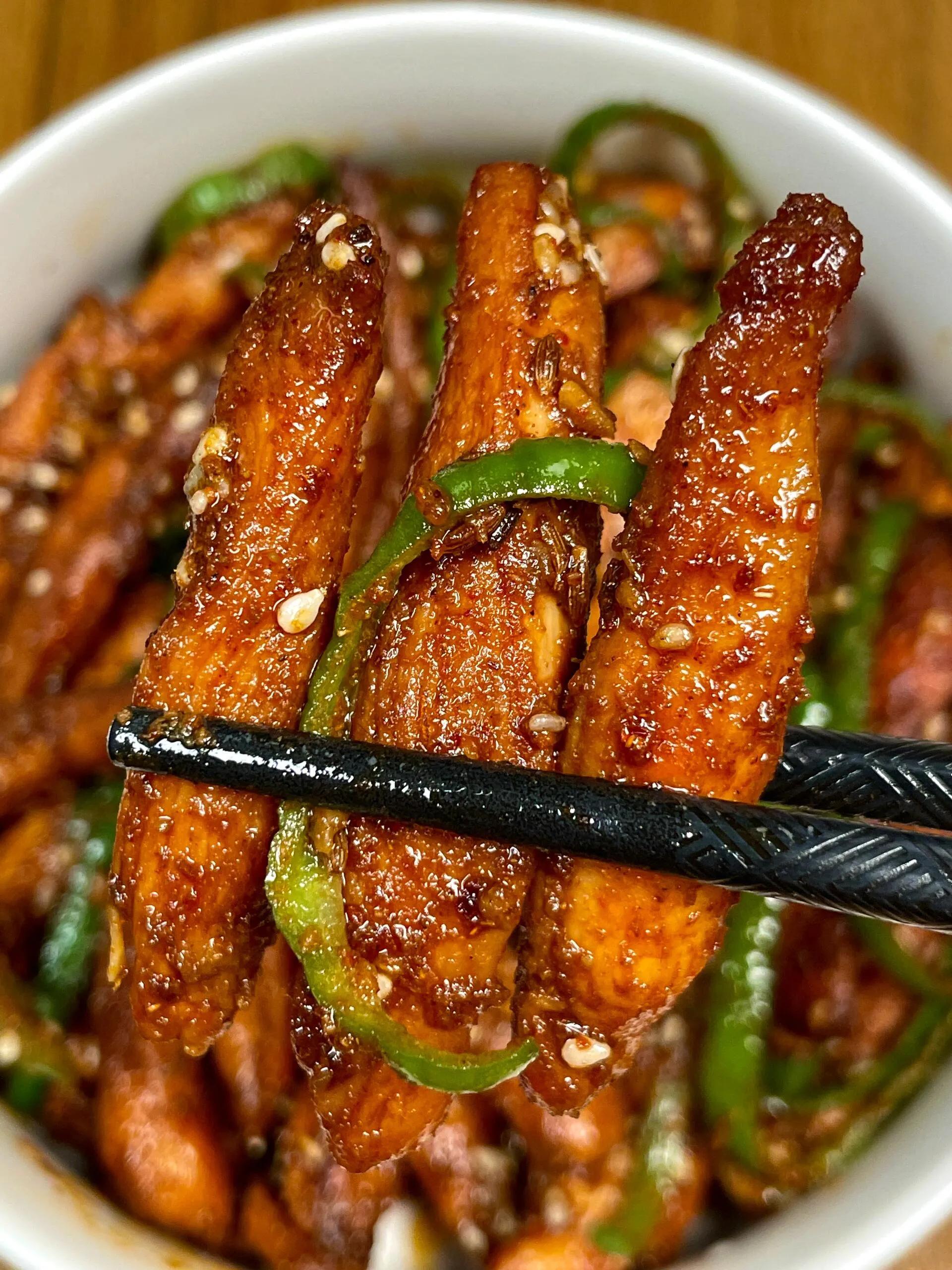 没想到青椒和鸡胸肉的搭配可以这么好吃!鸡胸肉滑嫩,孜然味浓郁!搭配青椒一起炒嘎嘎香!