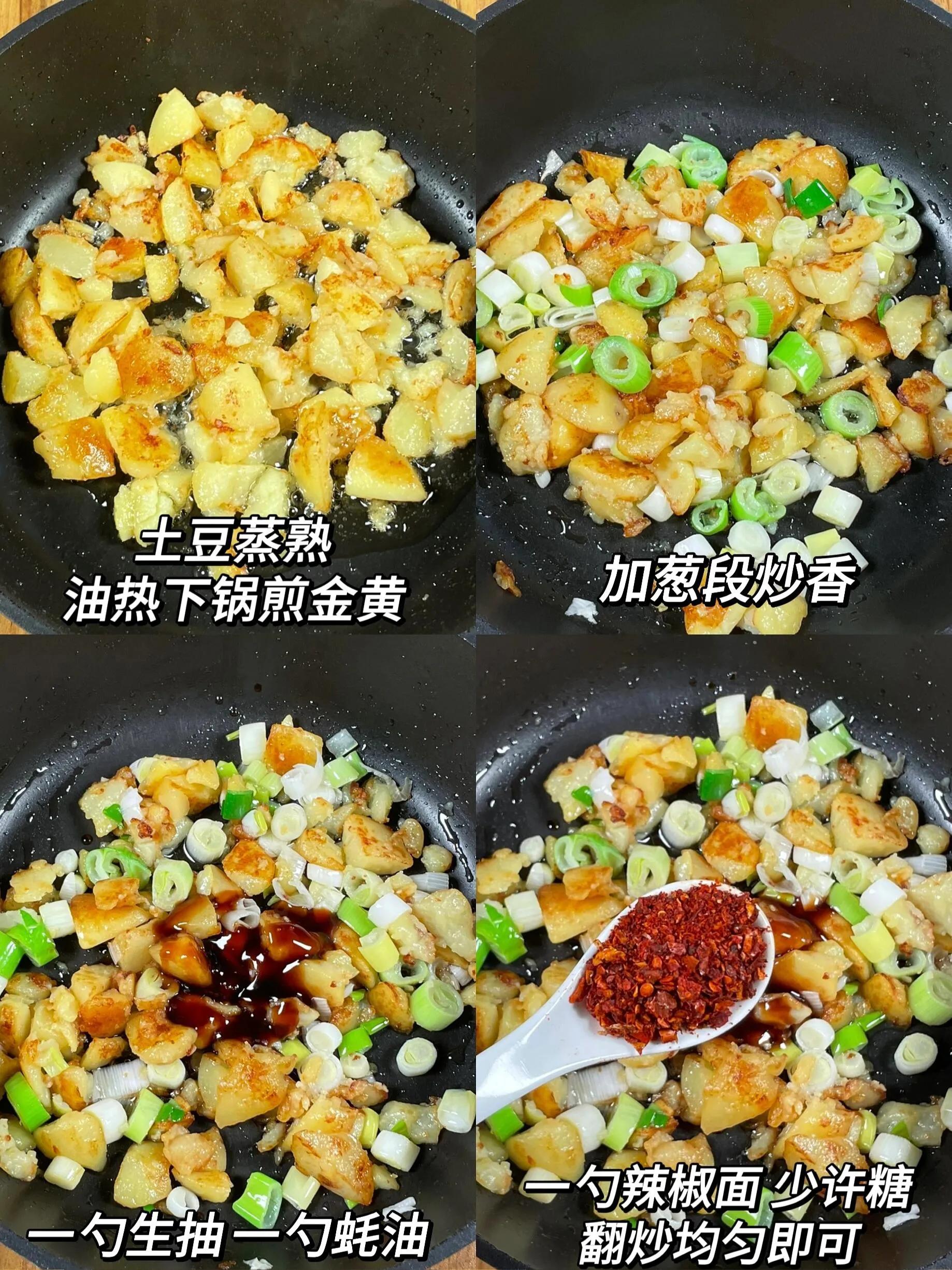 土豆煎的外焦里糯,葱香四溢,配米饭嘎嘎香!大家快试试!