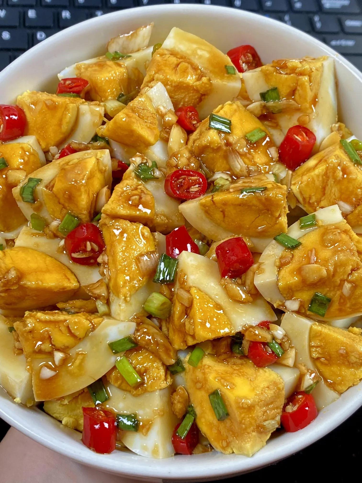凉拌鸡蛋这样做巨香巨好吃真想让你们尝尝酸辣爽口,拌上米饭一起嘎嘎好吃粉粉糯糯的蛋黄裹上每一颗饭粒,完全抵抗不住!低脂又美味,好吃无负担!