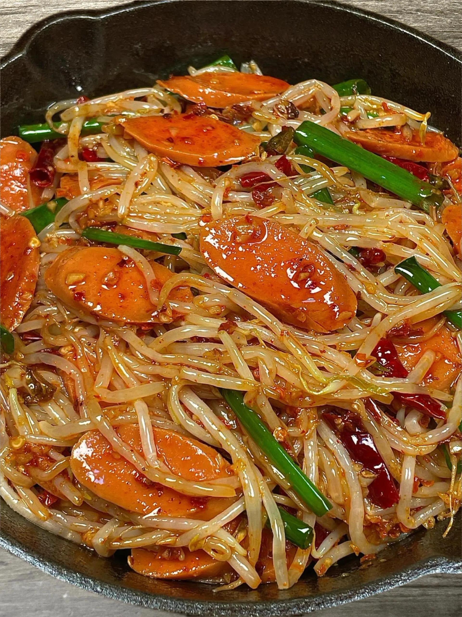 脆嫩爽口的豆芽,搭配焦香的火腿,香香辣辣巨好吃!一出锅就炫不停,配米饭嘎嘎香啊姐妹们快去安排起来!