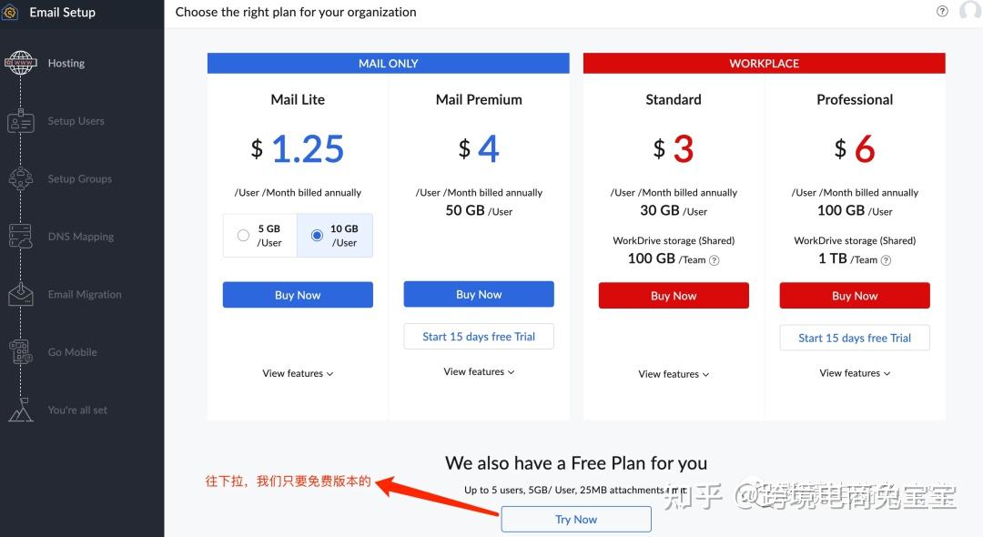 Zoho是一家提供CRM客服系统,邮箱,域名注册等服务的美国公司,看了下他们客户有亚马逊,一加手机,小米等,在邮箱服务这块算老牌专业了。Zoho根据内存,可创建邮箱数分不同套餐,对我们solo来说,免费版就够了 :最多可创建5个邮箱,每个邮箱5GB内存,邮件附件内存最大25MB。下面看一下免费版申请及设置流程,内容有点长,建议收藏慢慢看。
