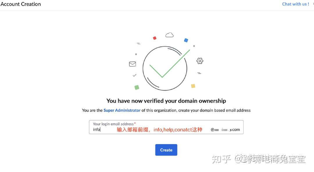 5、验证成功,输入域名邮箱,邮箱就创建好了。
