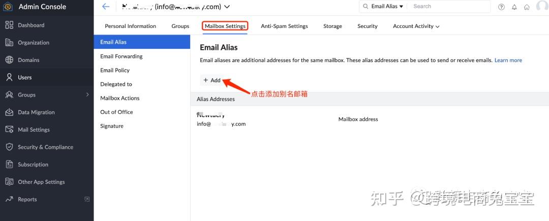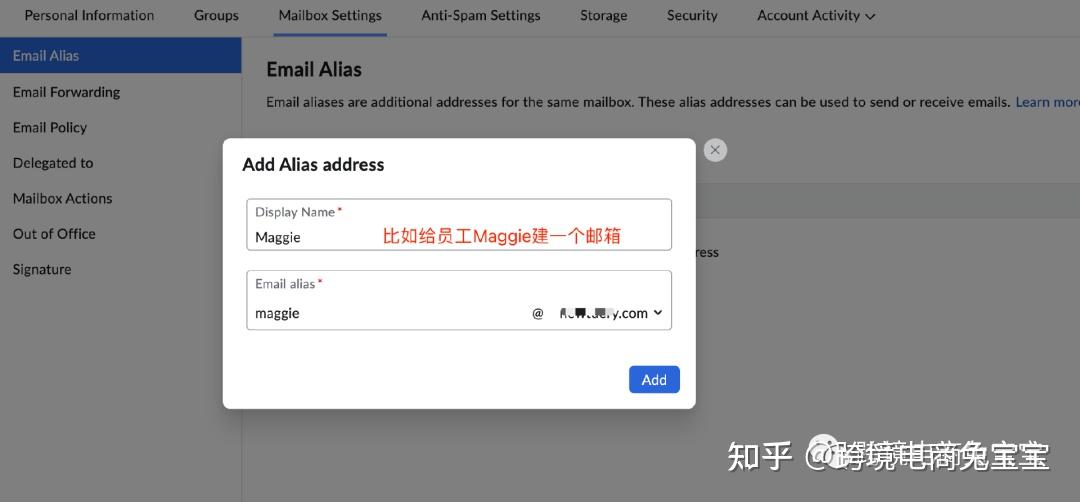 找到Mail Settings-Email Alias-点击Add添加别名邮箱