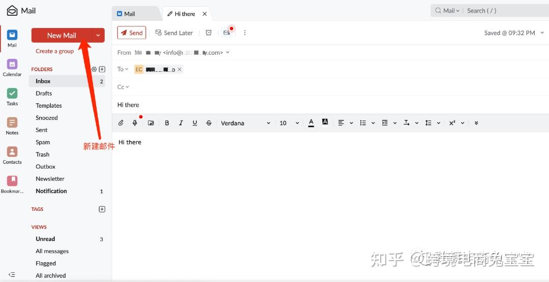 接下来简单测一下邮箱是否能正常收发:进入后台,点击红色的New Mail,给我的gmail发一封邮件。