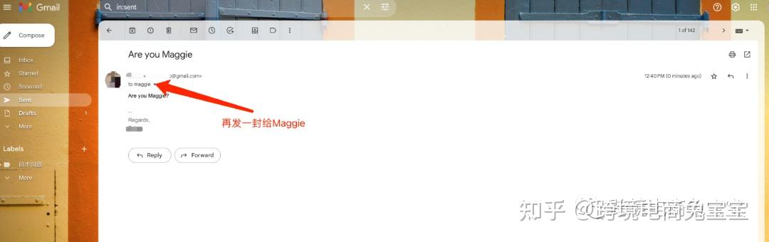 再看看别名邮箱的效果,用我的gmail给maggie@***.com写信
