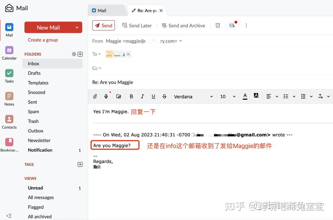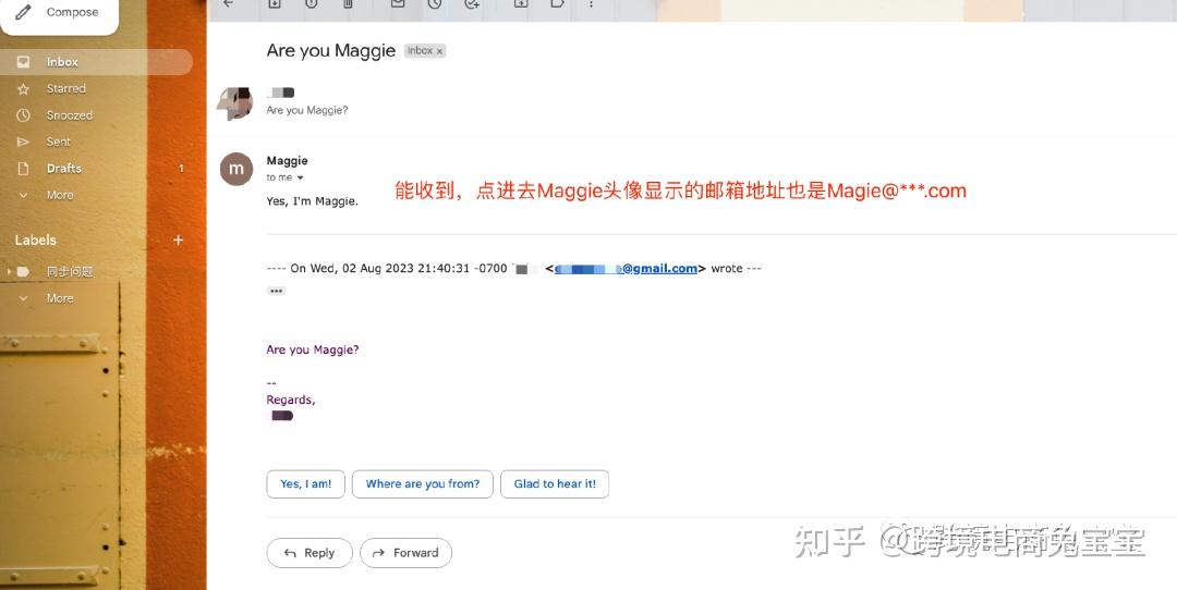 gmail能收到回复,点击发件人显示的也是maggie@***.com