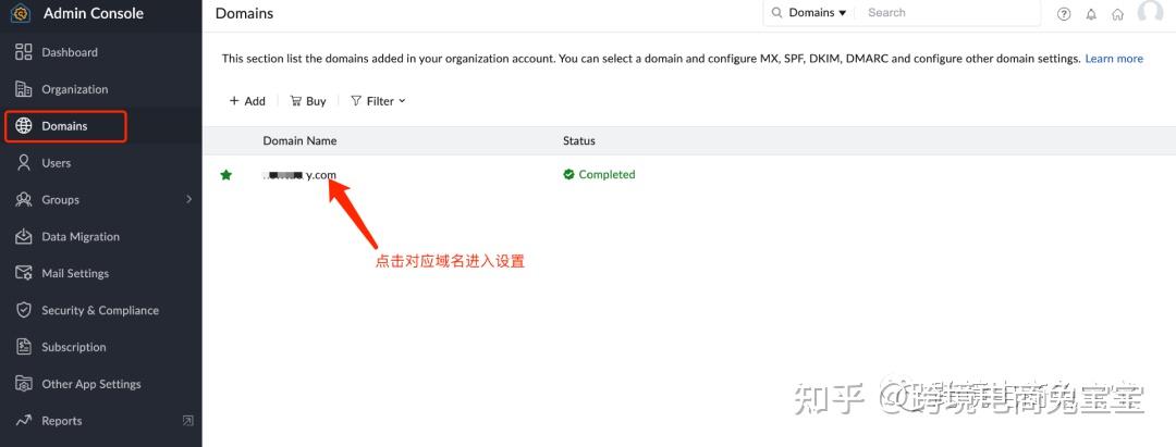 进入Zoho邮箱后台-左侧Domains-找到对应域名-点击
