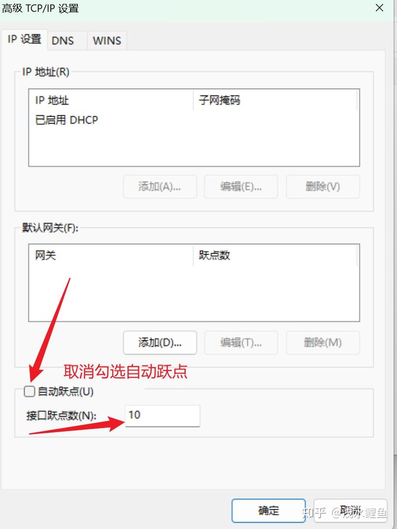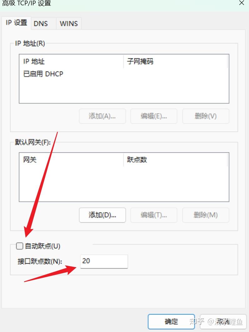 无线网络的跃点数设置为10,有线网络的跃点数设置为20