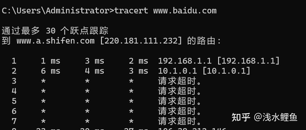 可以通过tracert等工具进行测试路径选择的测试,查看网卡选路是否成功,这里的192.168.1.1就是无线网络的路由器,证明修改成功