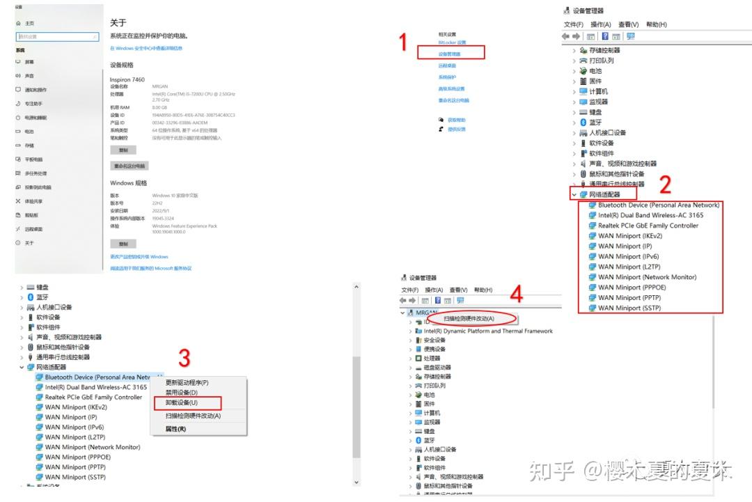 windows+i 打开设置,找到设备管理器,有教程说将网络适配器的Bluetooth Device(Personal Area Network)卸载,也有说将WAN Miniport(IKEv2)卸载或是更新驱动,也有说将 Realtek PCle GbE Family Controller卸载,更有甚者,将所有驱动都卸载,最后选择用户,扫描检测硬件改动,重启系统即可。