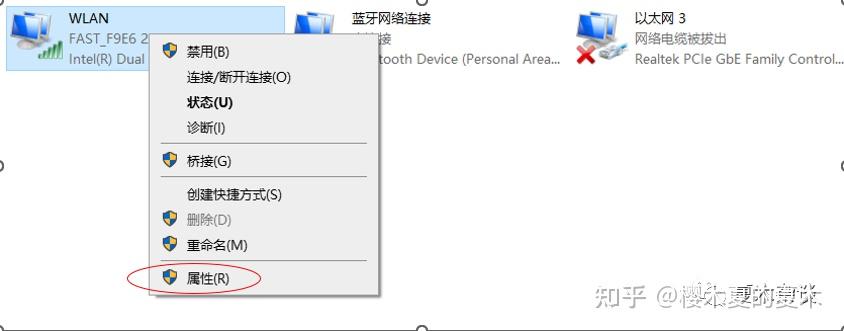 4、找到WLAN,点击鼠标右键,单击属性