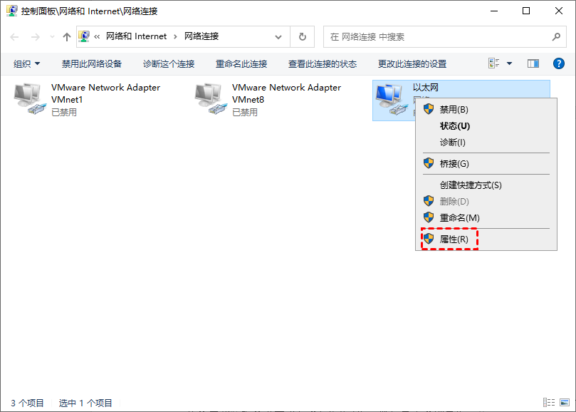 步骤2. 右键单击您的Internet,然后选择“属性”。