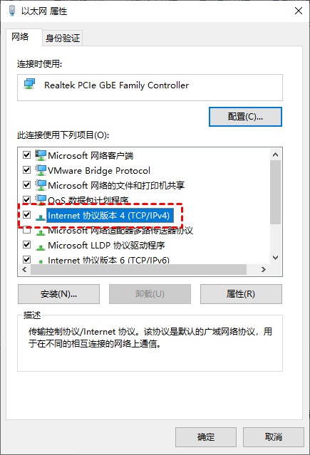 步骤3. 向下滚动并找到“Internet协议版本4 (TCP/IPv4)”,双击打开它。
