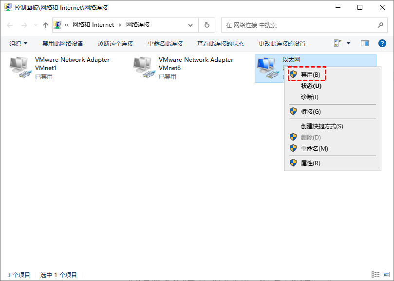 有时网络也是一个不容忽视的问题,如果网络不稳定,我们可以通过启用和禁用网络来解决问题。