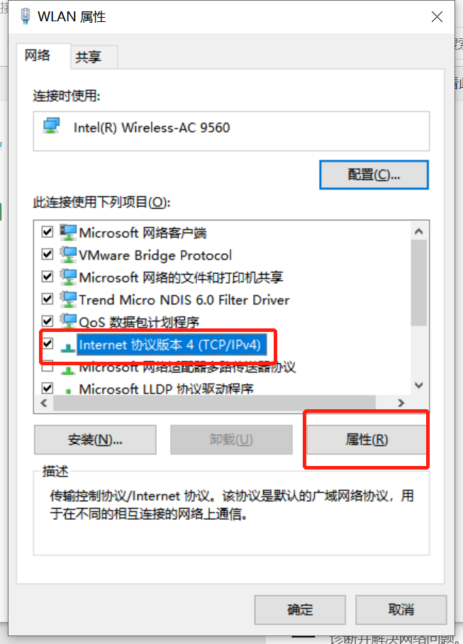 3.找到Internet协议版本4(TCP/IPv4),点击属性