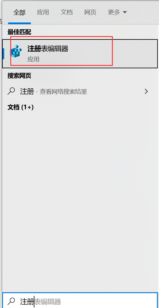 1.在开始栏输入注册编辑器,并打开
