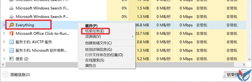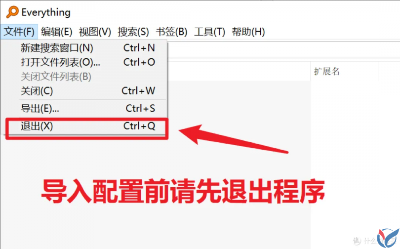 在导入配置文件之前,请先退出 Everything ,并确保后台没有相应的进程: