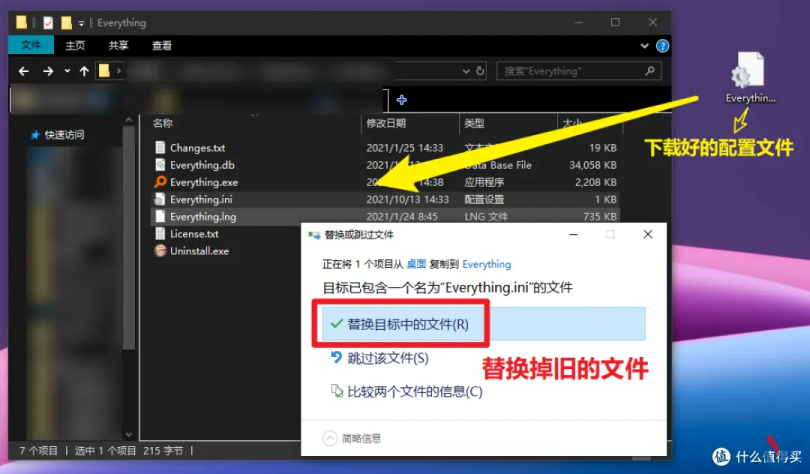 导入配置文件:只需要将下载好的 "Everything.ini" 复制到你软件安装目录下即可。