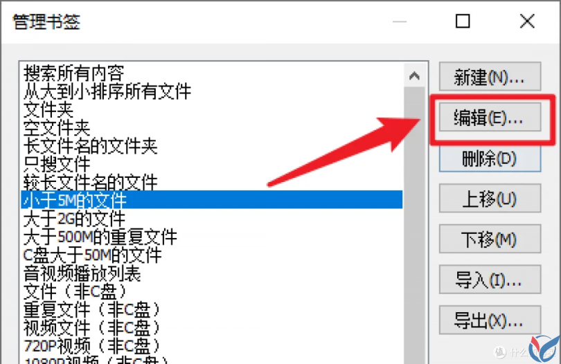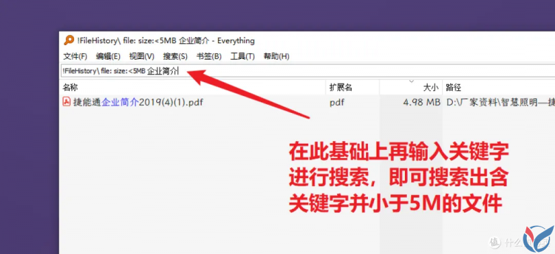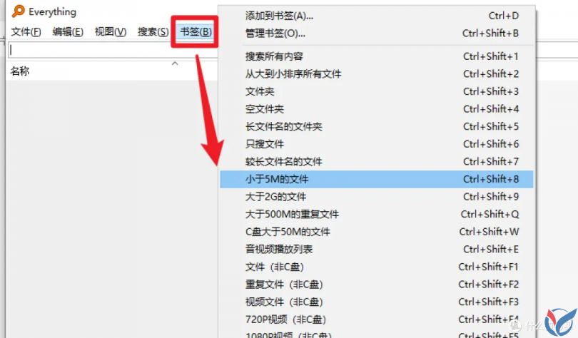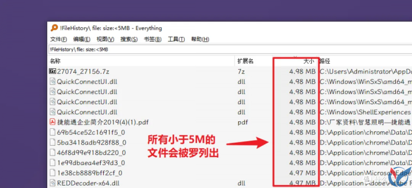 这里以”小于5M的文件“书签举例,点击之后的搜索结果如下: