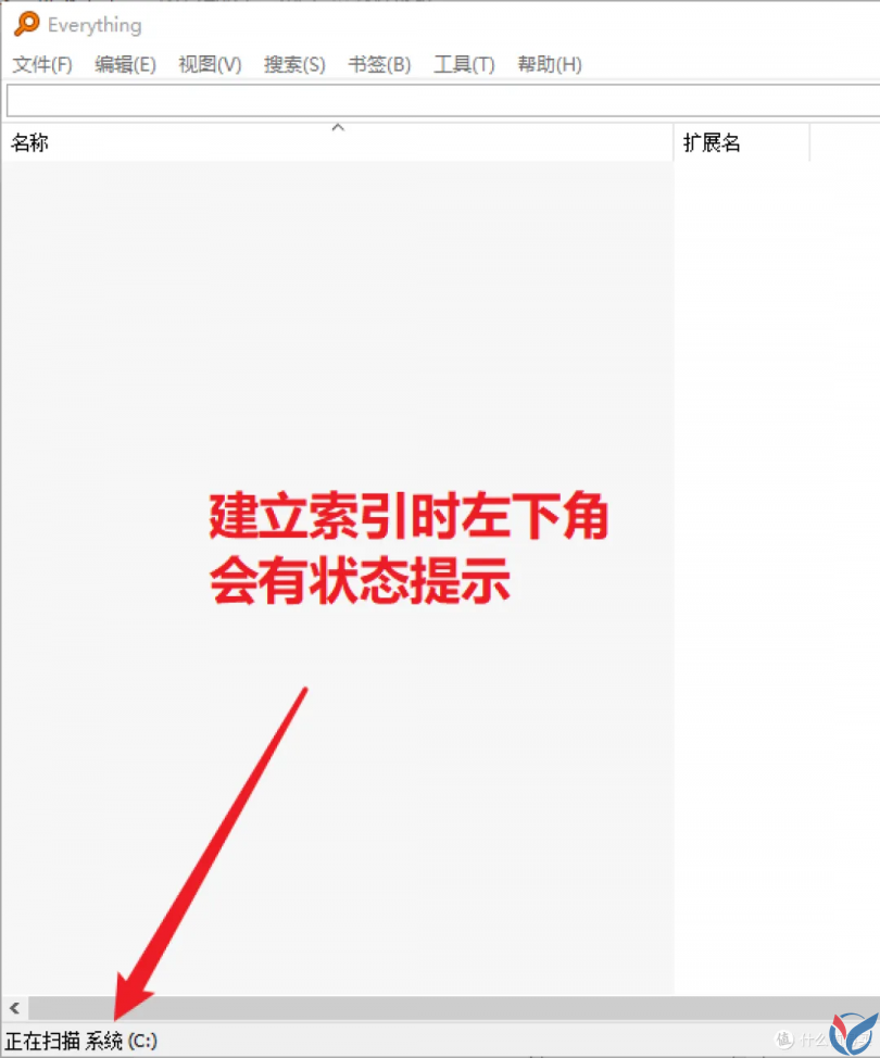 在初次使用 Everthing 时,软件会自动对系统上的各个盘(C盘、D盘...)的文件夹、文件名进行扫描、建立索引,建立索引的意思就是扫描硬盘上的文件并存储到数据库中,方便后续的文件搜索,官方的解释如下:
