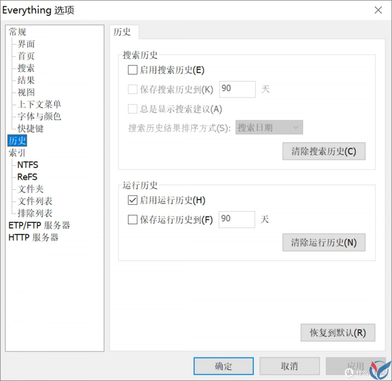 Everything 可以存储你的搜索历史,以便更快速的提供搜索结果,但这里UP的配置文件中没有打开此功能,有需要的同学可以自行打开。