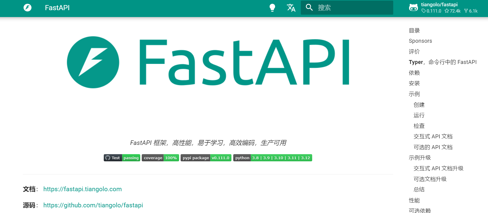 FastAPI官方网站:https://fastapi.tiangolo.com/