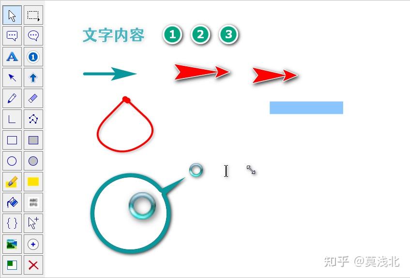 而在标注方面,也可以满足日常的需要了,序号、文字、箭头、矩形、圆形这些都有: